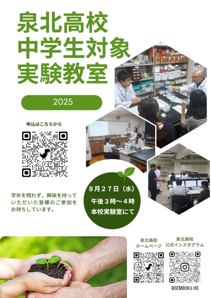 先日ホームページ上にてお知らせした「2025年度 中学生対象実験教室開催のお知らせ」の曜日の表記に誤りがございました。