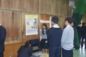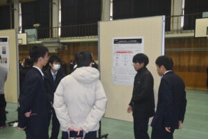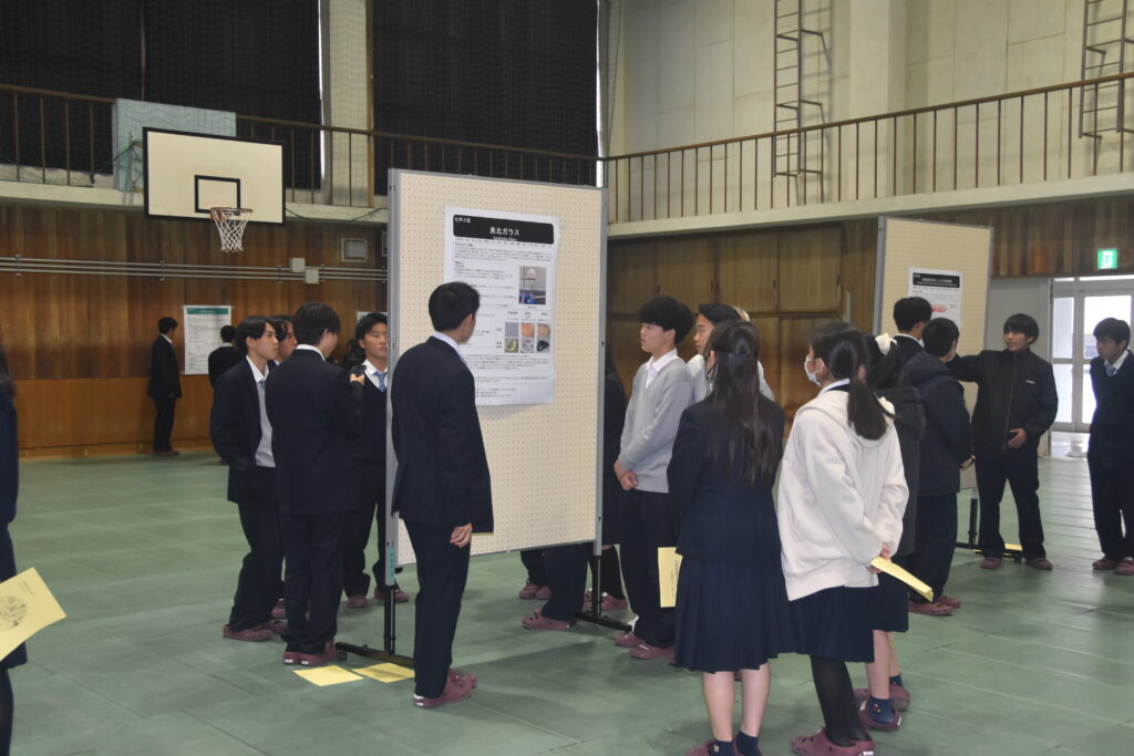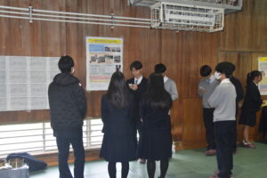今日のポスター発表では、取り組んできた研究内容とこれまでの成果について一生懸命プレゼンをしてくれました。同級生や1年生、あるいはご参加いただいた先生方とのやり取りの中で気づいたことをまとめ、今後の研究に生かしてほしいと思います。