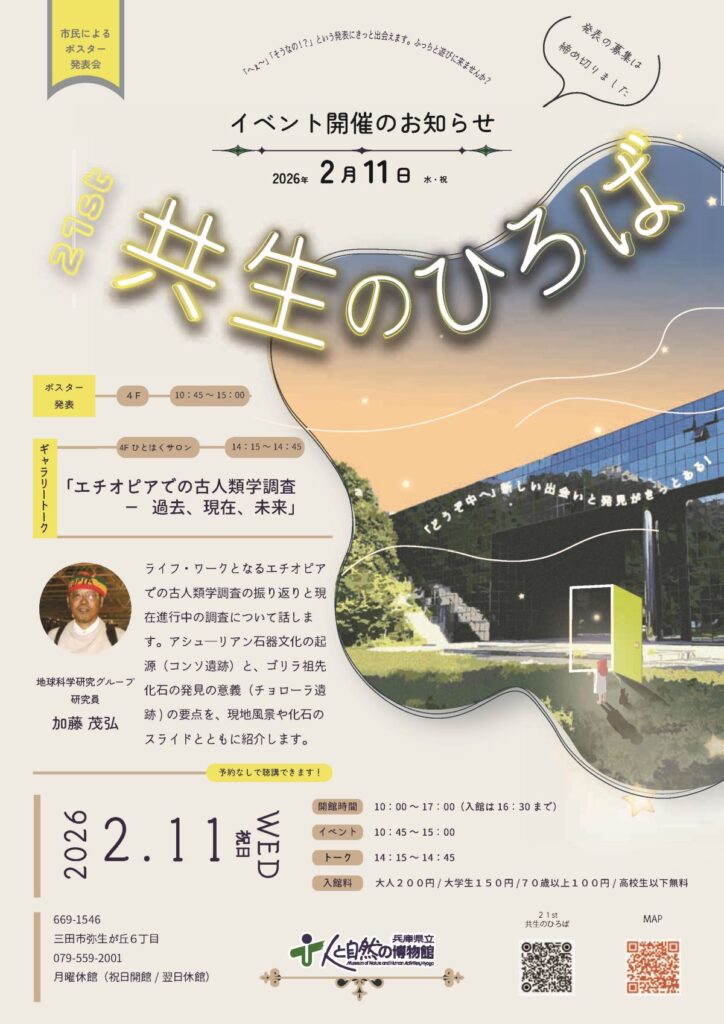 「共生のひろば」は兵庫県立人と自然の博物館(三田市)が主催する研究発表会で、小中高生から大学生、社会人の方々を含めて例年、多くの発表が行われています。