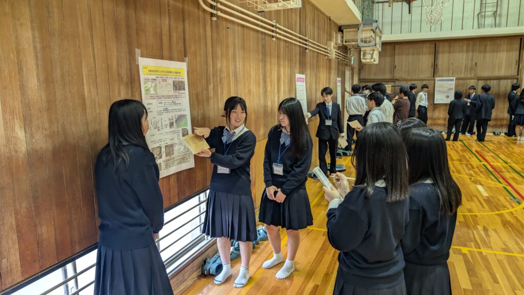 今日のポスター発表では、取り組んできた研究内容とこれまでの成果について一生懸命プレゼンをしてくれました。同級生や先生方とのやり取りの中で気づいたことをまとめ、今後の研究に生かしてほしいと思います。